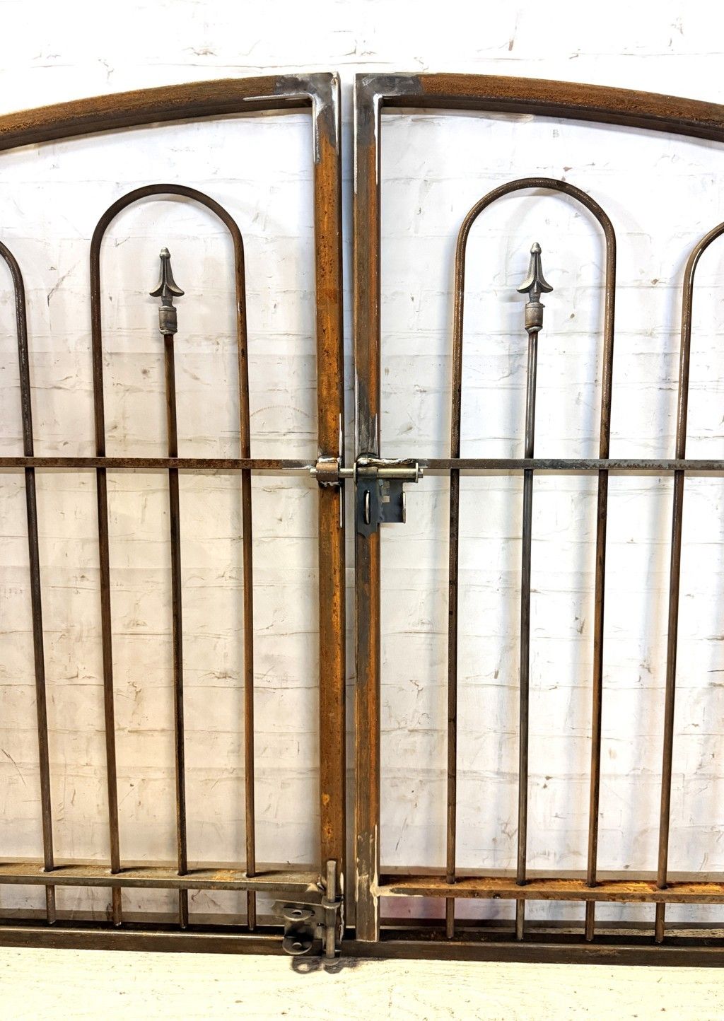 This gate will fit opening from 73.75" up to 82.25". Choose your opening measurement when you order. The height is 3' tall at the sides when installed and raise taller in the middle. We add a drop pin latch to one side and a ground receiver to our double gates.