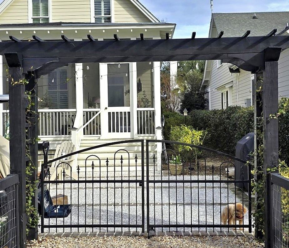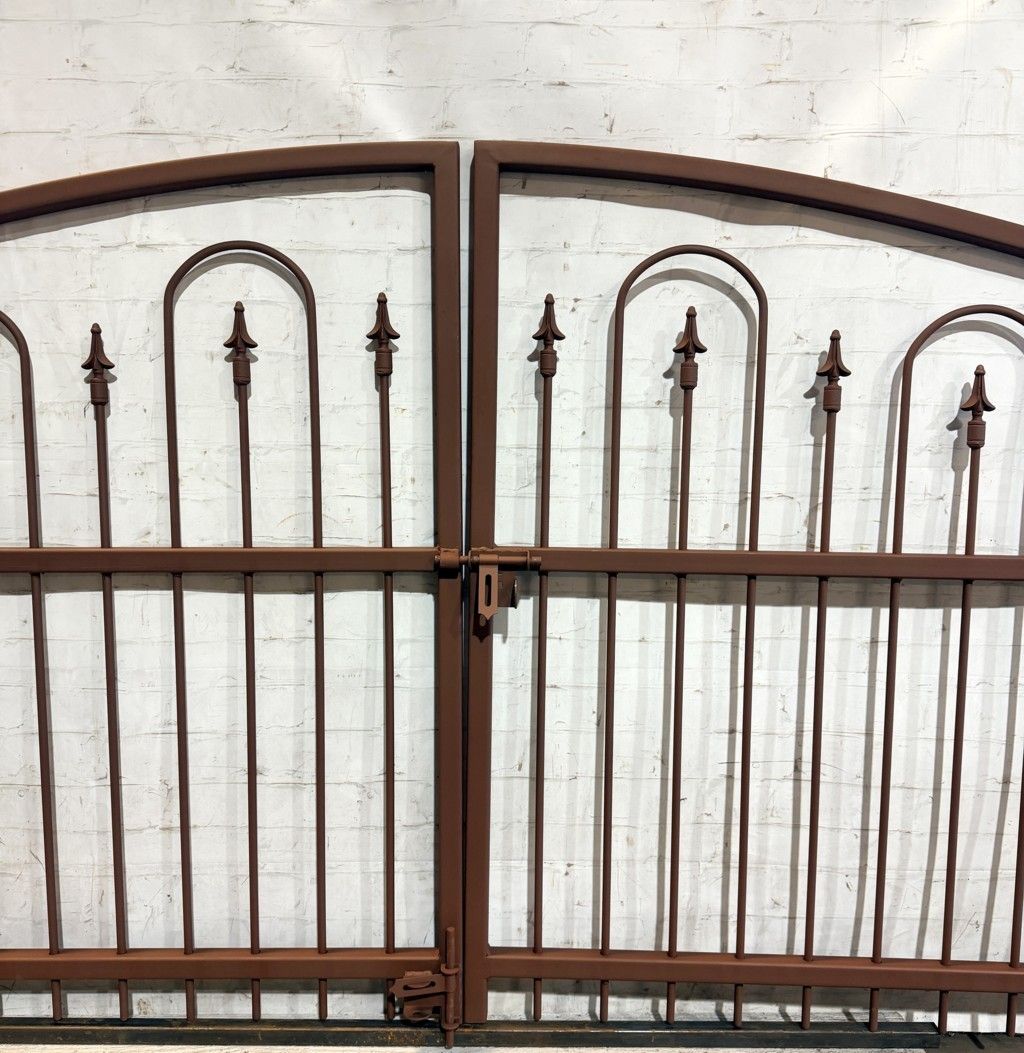 The big 9ft wide Missoula driveway gate is handcrafted in the USA and we adjust the measurements to fit your opening. This old-fashioned gate design fits many architectures and will last for decades. The frame is constructed of 1.25" square tube stock to add strength. When installed this gate will be 3ft tall at the sides and raise taller in the middle.