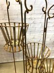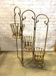 The Wrought Iron 40" Tri-Fold plant stand is a wonderful 3-tier wrought iron accent for your patio or deck with flowers. You can put your pots of herbs in each planter. The tri-fold means it folds out with 3 urns attached to it, measuring 40" tall with the urns being 8" deep and 10" across. When folded out, it measures 21" across.