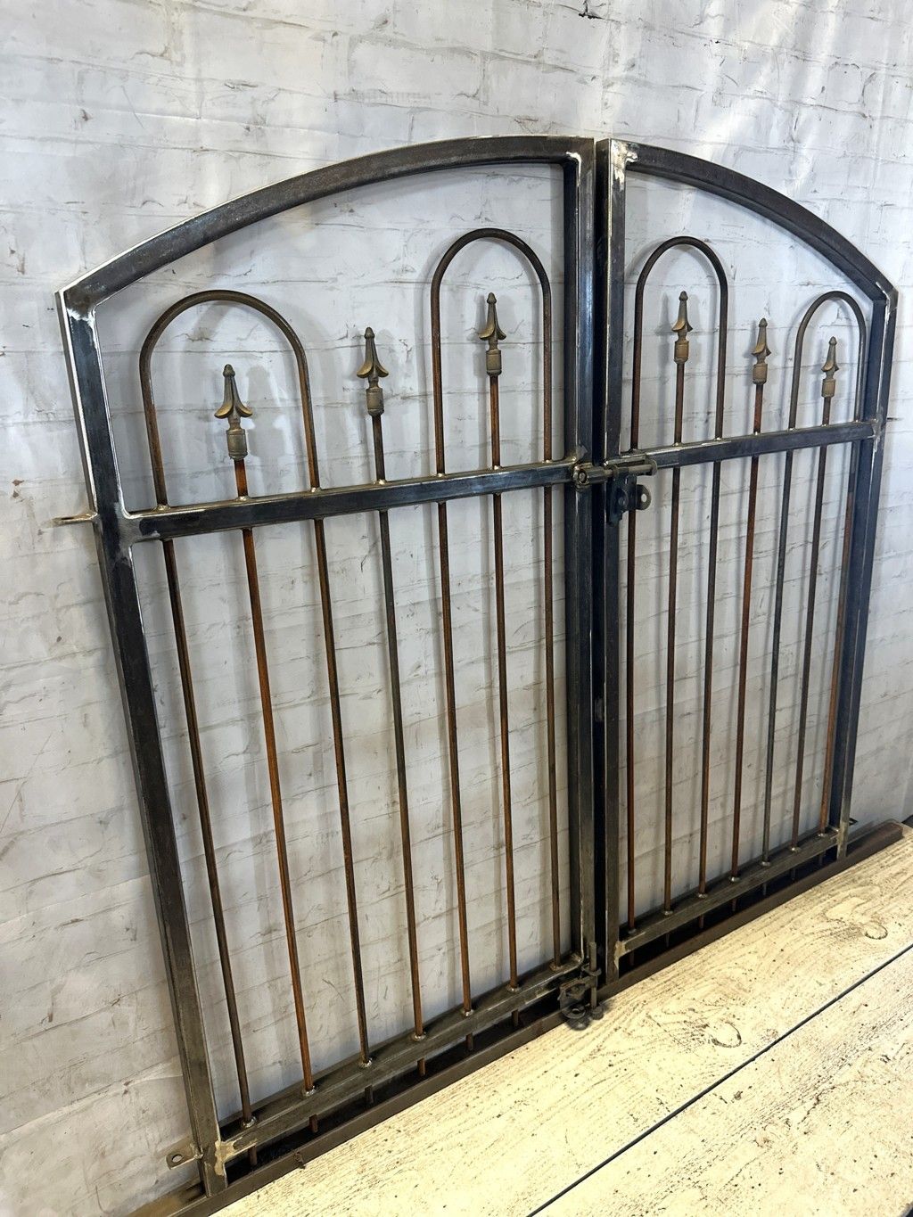 Introducing our 4ft tall wrought iron center divide Missoula entry gate! This stylish gate seamlessly fits with our fencing or can be paired with your posts or pillars. Crafted from sturdy 1.25" square tube stock, our Missoula Series gates not only promise durability but also boast an eye-catching visual appeal. The elegant arched design features a hoop and spear detail that complements our surrounding fencing beautifully. Plus, we offer various sizes to suit your specific requirements. Don't hesitate to reach out to us with your needs!