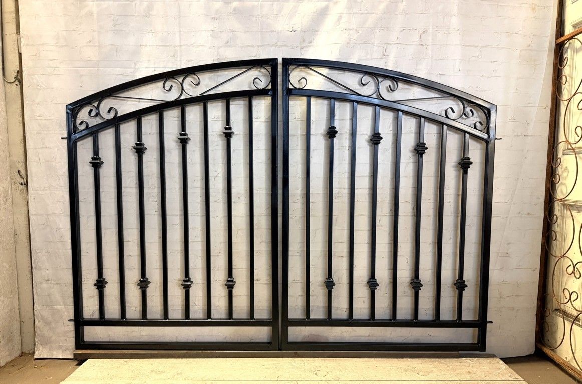 Our metal center divide Delaware gate is perfect for a wider entrance on a deck or out in your landscape. We are showing this wrought iron gate in Canyon Black. We have several colors to pick from to fit your home and property's style. The frame is welded 1" square tube stock so it is made to last. A slide pin latch and 1 drop pin latch with receiver will come standard with this gate. This gate installed is 4' tall and will fit a range of openings. Let us know if your opening width is not listed. We can make most sizes.