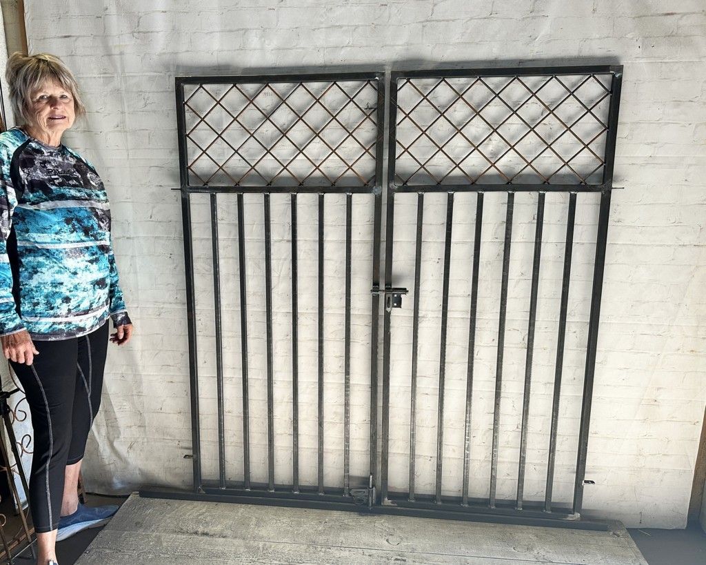 The tall center divide Henry gate has a contemporary style with enough design to work with all architectures. Do consider pairing this gate with our Henry arbor to complete entrance and welcome your guests. The frame is constructed with 1" square tubing. We fit our gates to you opening so choose your opening width to order.