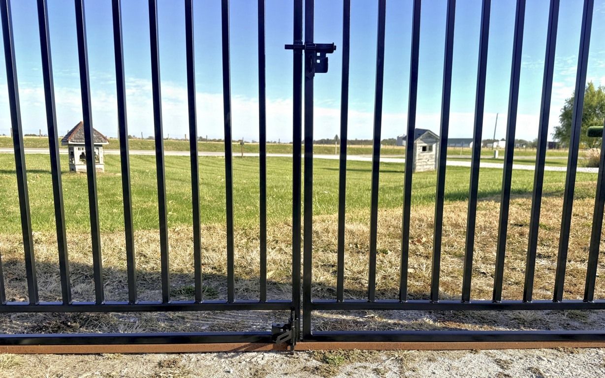 We customize our gates to fit your needs so let us know what you might want. Notice in the extra pictures we can add L shaped brackets - Drop Pin Latches - Posts with many choices of finial tops. When ordering a double gate a Slide Pin Latch is now standard and if you want another latch contact us. One Drop Pin Latch and Ground Receiver is included with your order.