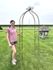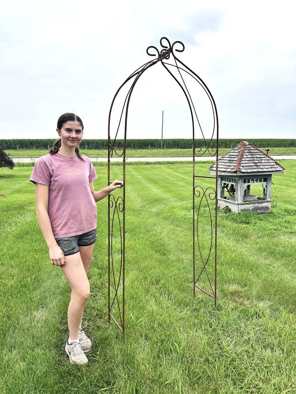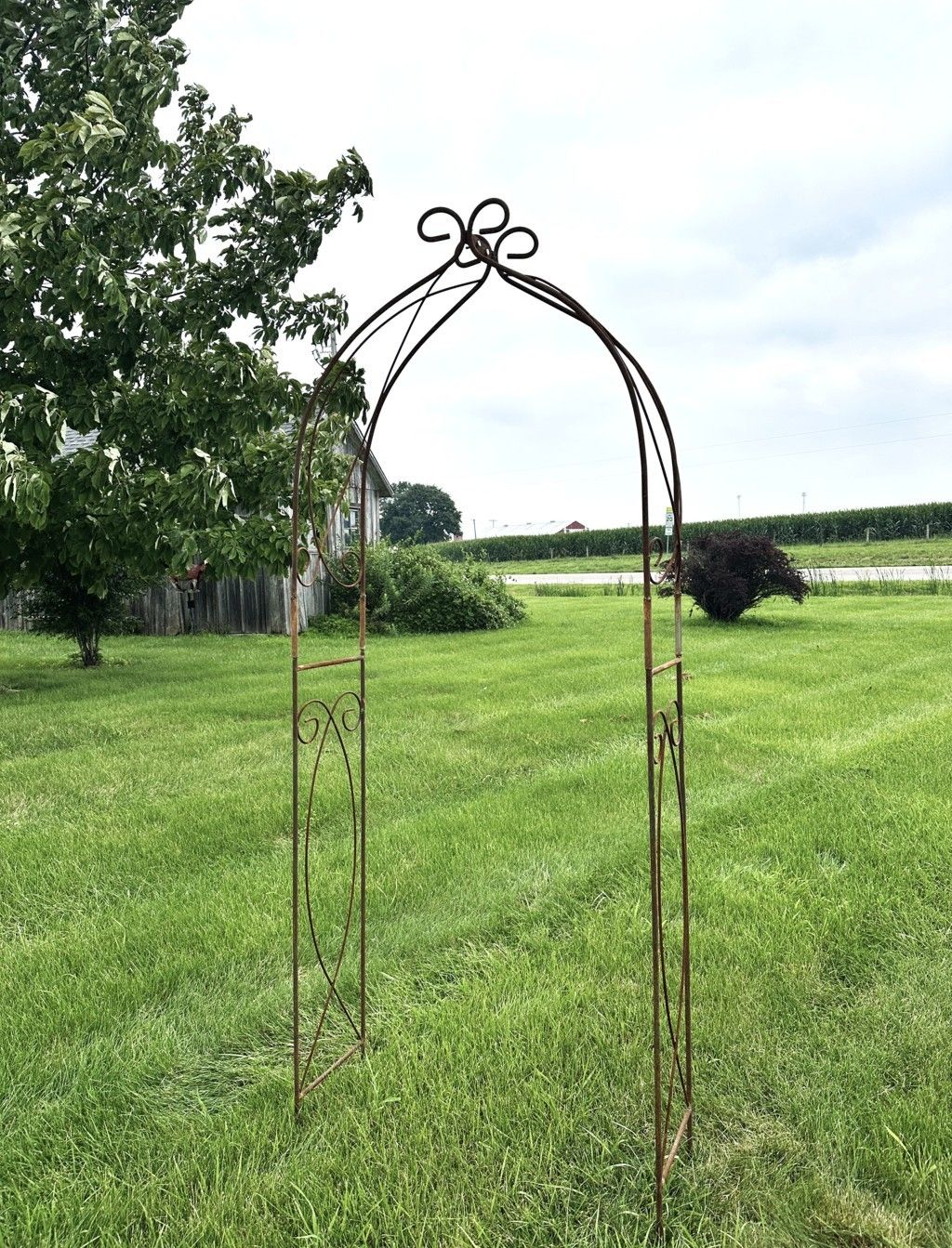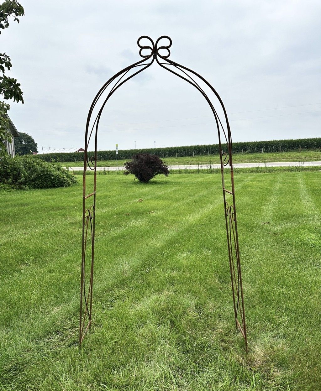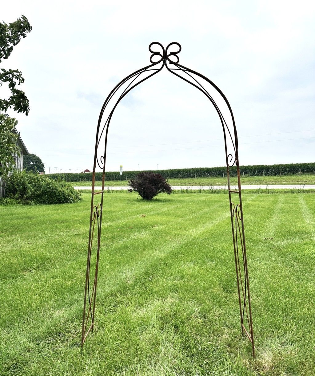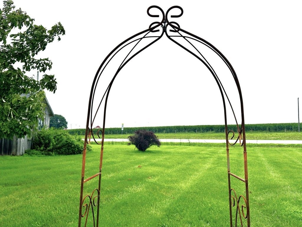 Size matters. This narrow wrought iron arbor is a hard-to-find size to fit a cottage garden or a smaller entryway. Consider how lovely climbing roses or blooming clematises will be winding up this solid metal structure. It's nice height at 98" makes a focal point from all directions yet it can be tucked away in a small space. Consider purchasing several arbors and space them down a garden path. So many possibilities. 98" tall x 36" wide.