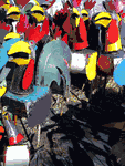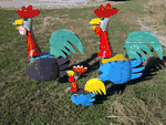 These Roosters are the neatest barn yard animals. The neck's spring loaded, or at least made from a recycled spring, so it's movable with a push. Multi Colored, many color choices available. Measures 65" tall.