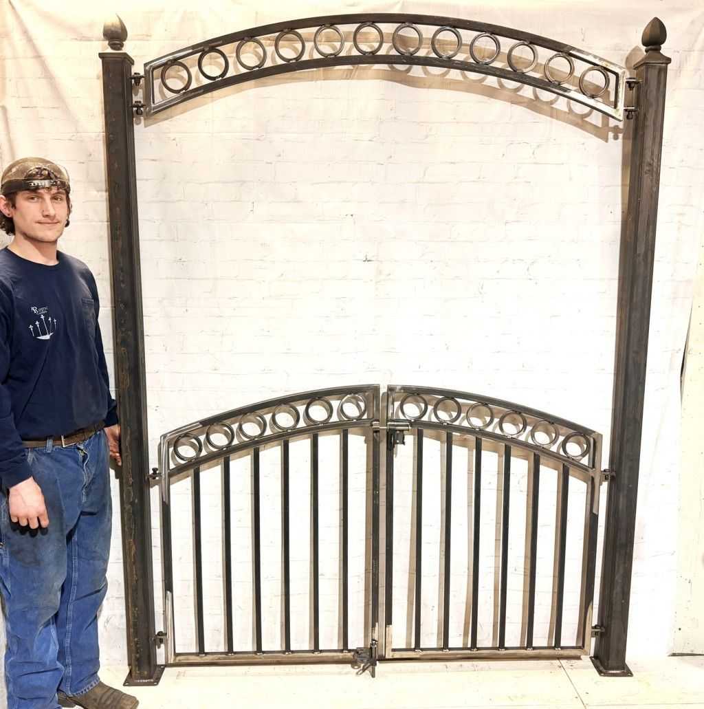We are offering several styles of gate framed tops to compliment your entrance. This circle design has a great look and can be made into different widths. This listing is for the top framed art but we are showing you several additional pictures to give you ideas.