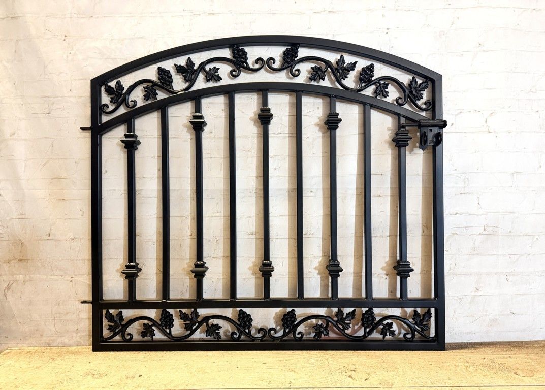 We are always offering new designs so take a look at this Concord Grape and Ivy entry gate that our skilled welders crafted for a client! One idea can spark countless designs. This gate is 3' tall for a 4' opening, but we can customize gates in various sizes. Simply measure your opening and choose your preferred size, and we'll fit it perfectly! Plus, don't miss out - we now offer matching arches to complement your home or landscape.