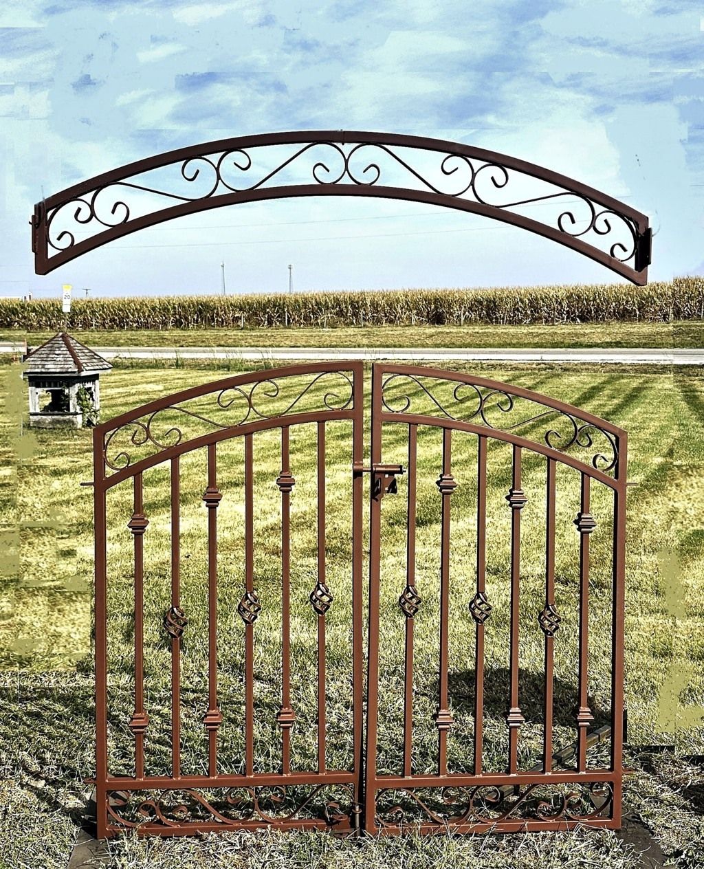 We are now creating framed Curly art to coordinate with your gates or homes architecture. We will show you several examples of these designs being used. This listing is for the top Curly framed art. We are making these by hand so different widths can be an option such as the Grape & Ivy or Circle frames. Contact us!!