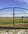 We have changed this large double Des Moines gate that is constructed here in middle Illinois using 1" square steel tube stock for strength and measures close to 5' tall at the sides. Do look at the sample picture showing a green gate with the upgraded 1" frame.