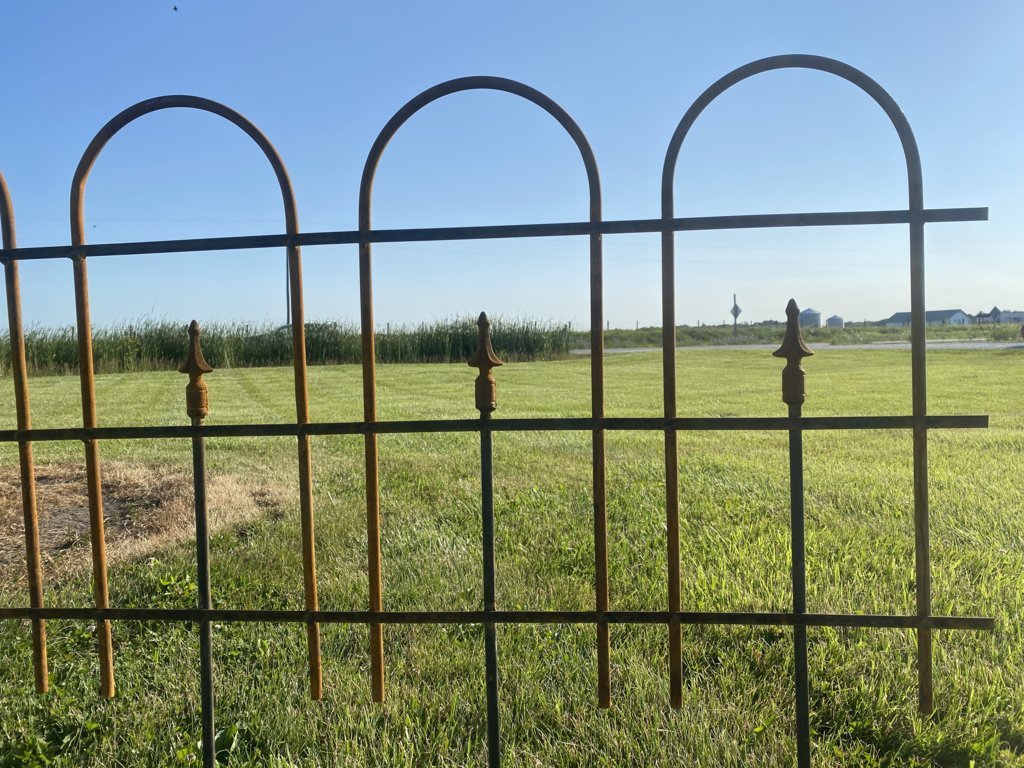 Use the iron fencing as a border or edging for your flower gardens. The garden fencing that we offer is patterned from the turn of the century antique wrought iron fence. The design is hoop and spear. It can be used alone to accent your special scrubs and flowers. It is gorgeous among your herbs that go right in your old family recipes. If you wish to enclose a rose garden or form a border, it is easy by pushing the legs into the ground. After installing the height above ground will be 26" high x 52" wide. Shipped in its natural rustic finish.