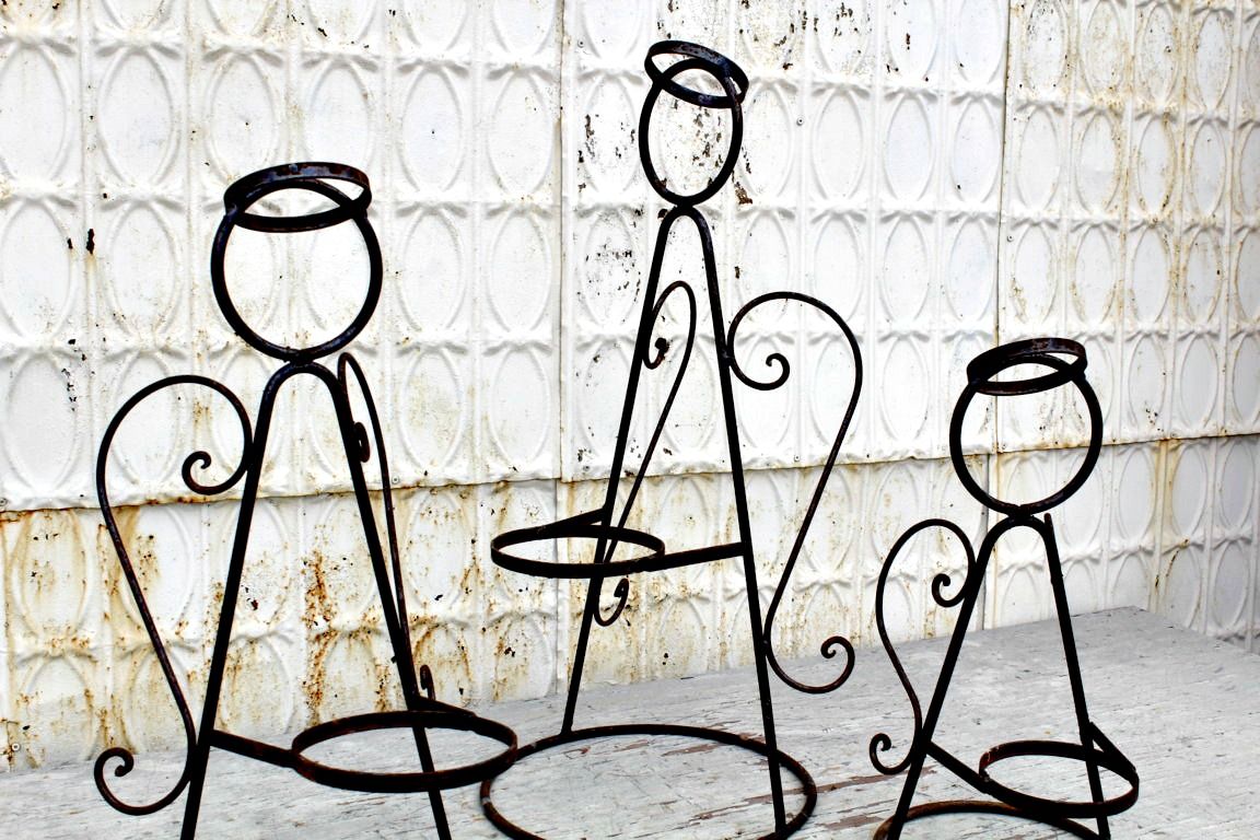 This is the large wrought iron angel statue can support your flower pot. Do get creative with our metal art by adding some holiday decorations for the season. Out in your landscape it can mark a special place in of a loved one. Measures 28" tall x 14" long x 11" wide. When it's time for Christmas, accent pieces like this make all the difference in your holiday decor.