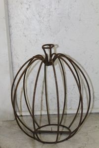 This pumpkin has a nail spike on the inside to secure a real wax or scented candle. Measures 14" tall x 14" diameter. Take a new approach in fall decorating by adding wrought iron jack o lanterns to your real pumpkin, gourds and real carved jack-o-lanterns.