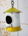 These round recycled tin bird houses would make a nice accent hanging from your tree. The colors will vary, so if you have a favorite color please specify in the comment box and we will try to fit your needs. A really cute bird shelter.