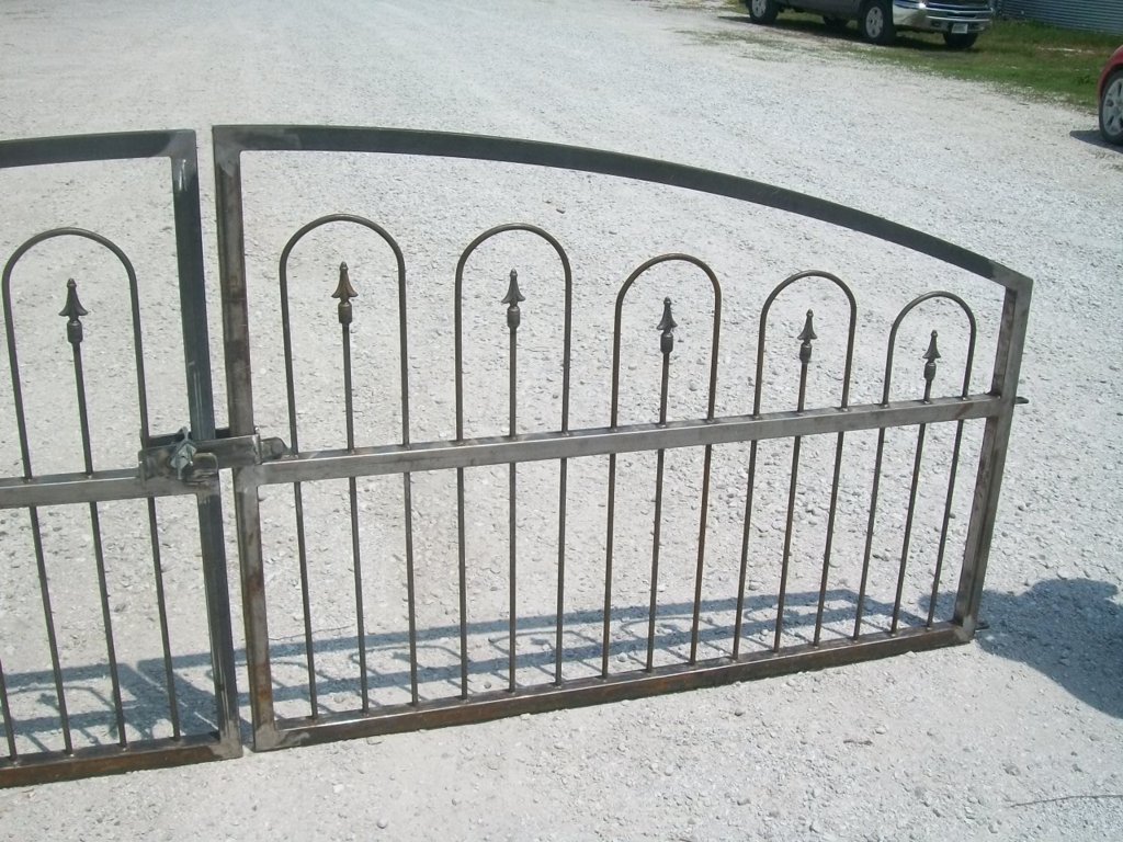 Our fencing company is ready to complete your project with our all hoop driveway gates. The 3' tall 12' wide entry gate coordinates with our 3' wrought iron fencing. It raises taller in the center with the last hoop on each end being 3' tall to line up with our fencing.
