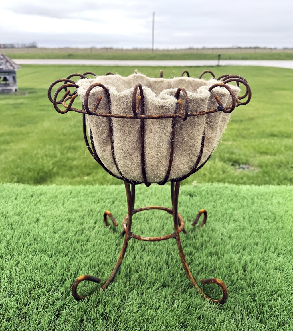 Choose the Ginger iron plant stands for your porch or patio. Plant right in the basket or place a pot in it. Measures 17.5" tall x 15.5" diameter x 8" deep