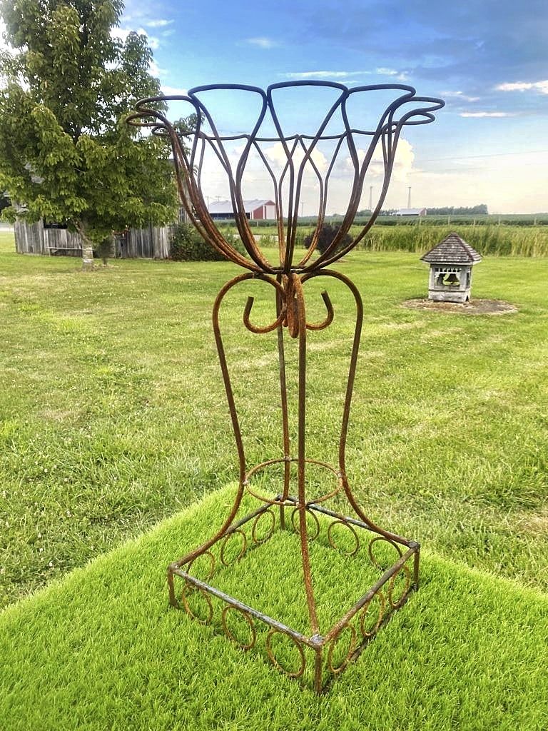 This wrought iron plant stand is perfectly sized for trailing plants to spill gracefully over the sides of the basket. Place it on your porch or patio and enjoy the natural beauty it adds to your outdoor space. Measures 33" tall x 18" diameter x 9" deep. The base is 13" square.