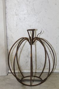Measuring 12" tall x 12" diameter. This small wire pumpkin can be the centerpiece to your table decoration. Just add a flower or plant or lighted candle.