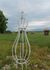 This is the Small Ball Top version of the metal ball topiary topped with a cast iron finial. This wrought iron plant trellis is a great size to fit in a pot but also stands tall to make a show out in your flower garden. VERY CUTE! It measures 31" tall x 9" diameter at the fattest part before staking. After staking it will be 27" tall with the bottom ring 5" in diameter.
