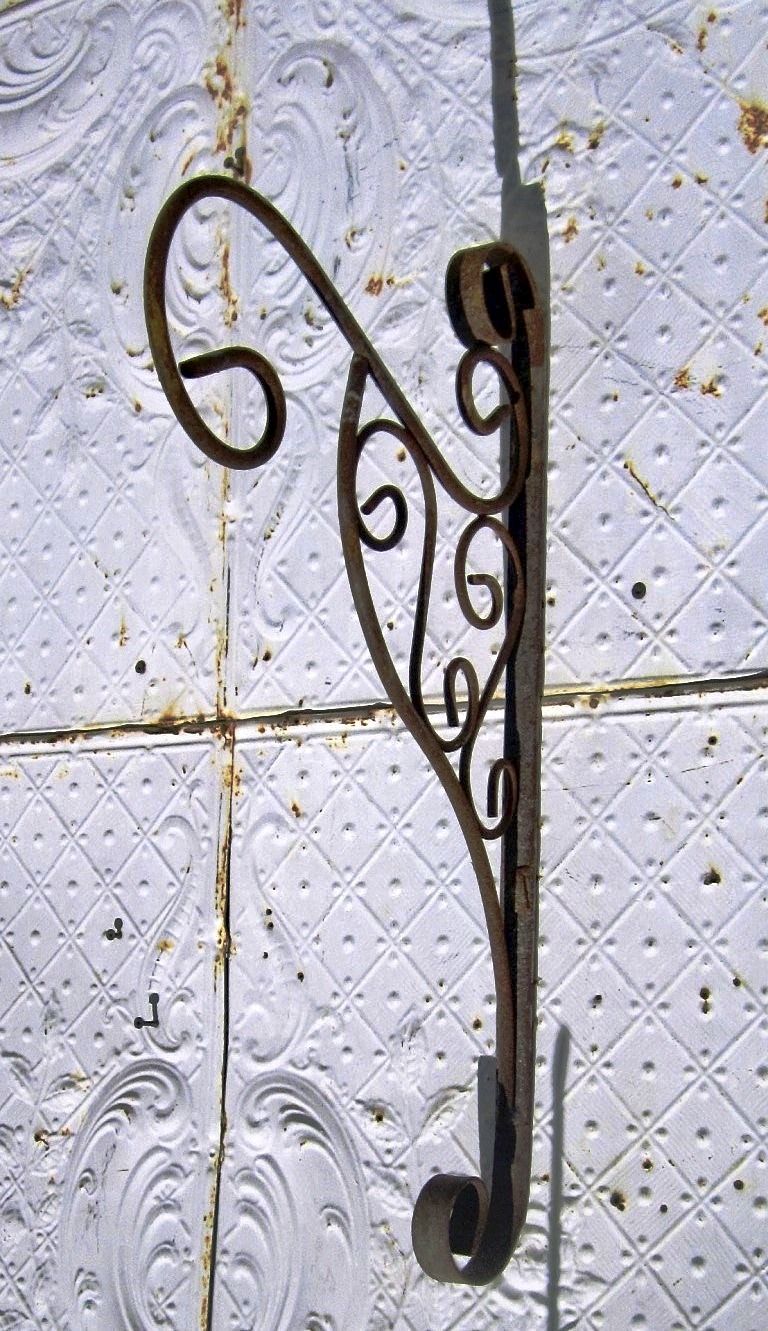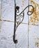 This wrought iron wall bracket is used to hold your hanging basket of flowers. The sturdy handcrafted metal bracket is welded for your heavy planters. Measures 26" tall x 15.5" out from the wall. Made from solid, welded metal, this bracket will make a nice decoration - form and function!