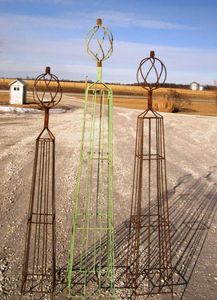 We added new styles of our wrought iron trellis and topiarys in tall garden obelisks to help train your plants and ivy. These new Iron Garden Obelisks are tall with a twisted ball top that detaches for shipping.
